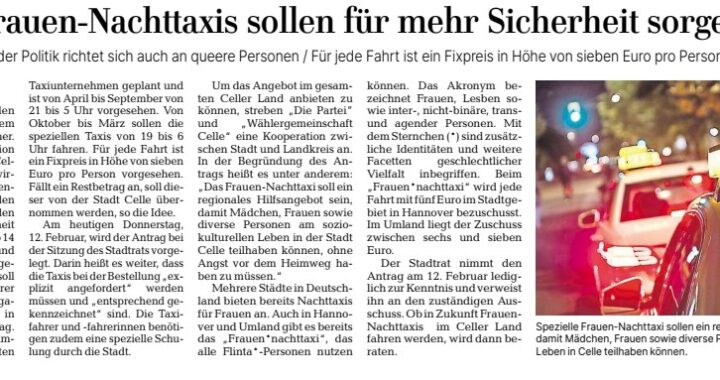 Heimweg ohne Angst: Nacht-Taxis in Celle sollen Frauen sicher nach Hause bringen