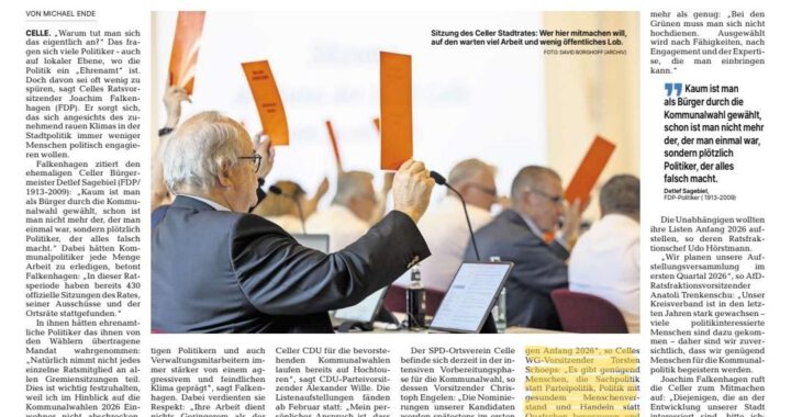 Ratsherr Torsten Schoeps gibt bekannt: „Die Nominierungen der Wählergemeinschaft Celle e.V. erfolgen Anfang 2026.“