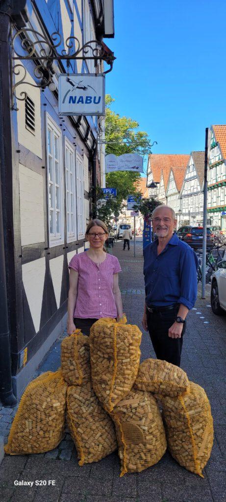 Säckeweise durfte Torsten Schoeps das Sammelergebnis vieler fleißiger Celler Sammler*innen an die NABU-Regionalgeschäftsstelle Heide-Wendland, Celle, Schuhstr. 40, übergeben.