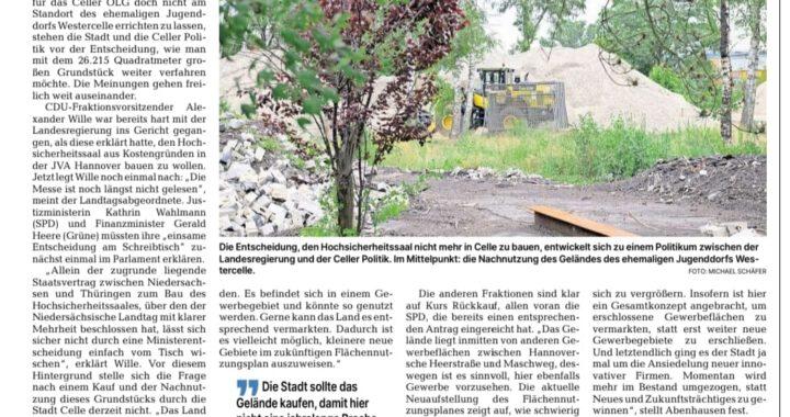 Nachdem der neue Hochsicherheitstrakt für das OLG Celle nun scheinbar doch nicht auf das Gelände des ehemaligen Jugenddorfes in Westercelle gebaut werden soll, stellt sich die Frage, wie mit der Fläche umgegangen werden soll.
