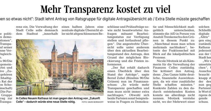 Transparenz in Celle: Parteienbündnis fordert digitale Übersicht von Stadtverwaltung